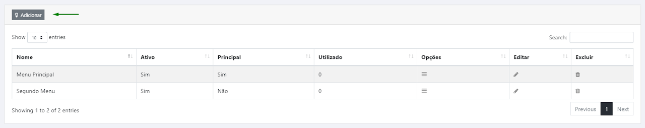 O menu "Menus" é onde você cria seus menus e submenus para o atendimento automático.
